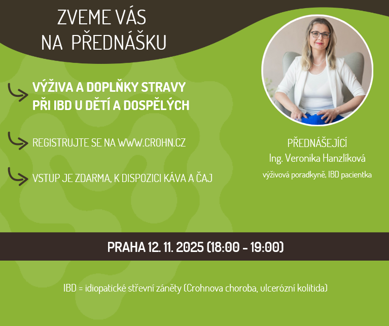 Zveme Vás na seminář, který pro nás připravila naše kolegyně, ale také výživová poradkyně a pacientka s ulcerózní kolitidou Ing. Veronika Hanzlíková.